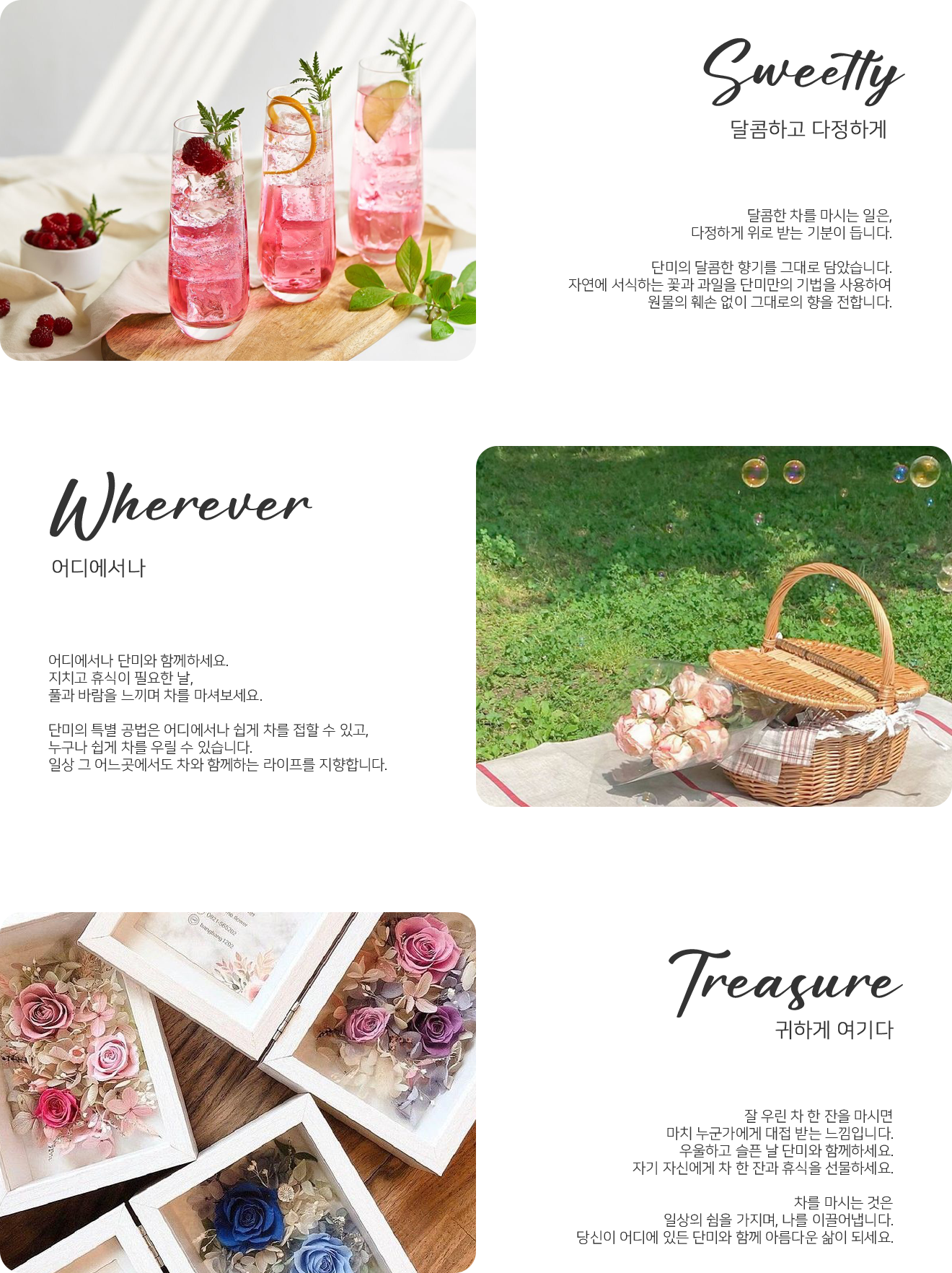 접하기 쉬운 장미, 벚꽃, 딸기, 레몬 등 친숙한 원물들을 블렌디드 하여,